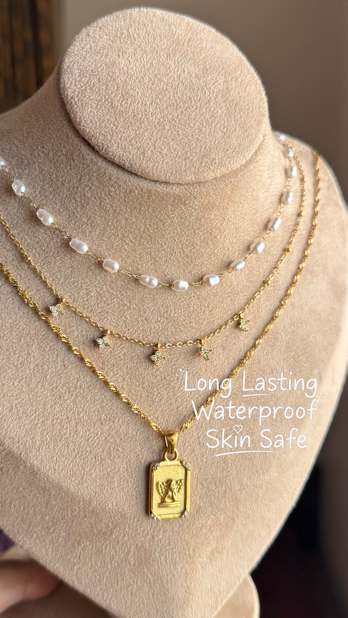 All our pieces are crafted from premium stainless steel and coated with 18k PVD gold plating — designed to resist tarnish and retain their shine for years to come. Waterproof, sweatproof, and everyday-friendly — just like your style
